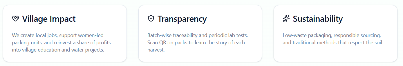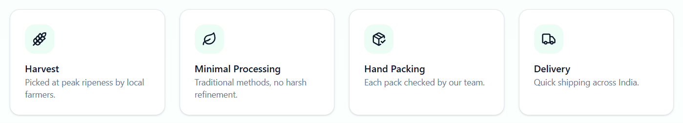 VANVEDA began with a simple belief: the closer food is to nature, the better it tastes and nourishes. Our farmers grow, harvest, and craft using age-old methods. Our village team hand-packs every order, keeping things personal and pure.